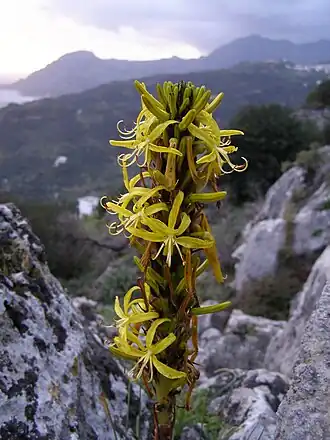 - Gelber Affodill (Asphodeline lutea (L.) Rchb.), Heimat: Apenninenhalbinsel, Balkanhalbinsel, Rumänien, Türkei, Algerien, Tunesien, Vorderasien, Kaukasus.