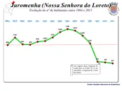 1920 setzte ein Verfall der alten Ortschaft ein, und direkt daneben entwickelte sich das neue, bescheidenere Ortszentrum. Ab den 1950er Jahren setzte dann eine starke Abwanderung ein, und die Einwohnerzahl nahm stark ab, weiter beschleunigt mit der Schaffung der eigenständigen Gemeinde São Brás dos Matos 1984 durch Ausgliederung aus der Gemeinde Juromenha.