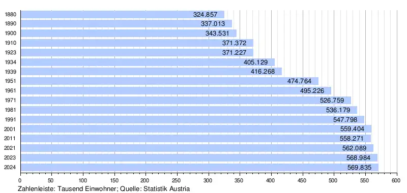 - ↑ a b Statistik Austria – Bevölkerung zu Jahresbeginn nach administrativen Gebietseinheiten (Bundesländer, NUTS-Regionen, Bezirke, Gemeinden) seit 2002 (ODS)