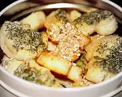 Käsegebäck sind Backwaren aus Blätterteig, Mürbteig, Brandmasse oder Hefeteig, denen würziger Käse zum Teig, als Füllung oder Bestreuung zugesetzt wird.[1] Sie werden in Form von Stangen, Brezeln, Brötchen oder Plätzchen (Cracker) angeboten.