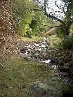 ![]() Ein Quellarm des Käsenbachs innerhalb des neuen Botanischen Gartens Tübingen | ||
