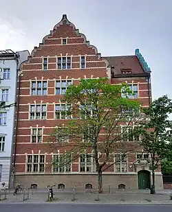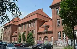 - ↑ Das Gebäude ist seit 2018 eines der zwei Häuser des Felix-Mendelssohn-Bartholdy-Gymnasiums. Siehe Bernd Wähner: Modernes Innenleben im alten Schulgebäude (mit Abbildungen). In: Berliner Woche vom 15. März 2018.