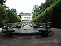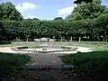 | Eine von Hainbuchen eingefasste Wasserterrasse in Kölns Botanischem Garten, der Flora, vor dem Freisitz des dortigen Cafés. Auch diese Kaskadenanlage geht auf Pläne Peter Joseph Lennés von 1862/64 zurück. | |