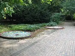 Der „Mühlsteinbrunnen“ von 1964 entstand nach einer Idee von Walter Franz und wurde durch den Gartenarchitekten Kurt Schönbohm verwirklicht.[17] |