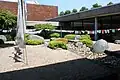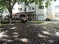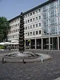 zwischen den hohen Gebäuden des Amts- und Landgerichts sowie des Arbeitsamts wurde 1986 nach einem Entwurf von Wolfgang Kuhn eine Brunnenanlage errichtet. Es ist ein Kugelbrunnen, der aus sardischem Granit der Region des Monte Ortobene gefertigt wurde. Der mit Blumenornamenten versehene Brunnen ist zurzeit nicht in Betrieb.[17] | |