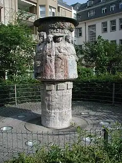 | Die kleine Anlage im Stadtteil Köln-Rodenkirchen steht am Eingang zur sogenannten Rheingalerie an der Kirchstraße. Die von groben Rheinkieseln eingefasste Stele aus Marmor wurde 1986 nach einem Entwurf des Architekturbüros Mronz gefertigt.[17] | |