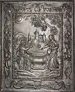 Die jüdische Geschichte in Köln geht urkundlich bis auf das Jahr 321 zurück. Das Leben dieser Bevölkerungsgruppe war mit ihren von alters her gelebten Traditionen ein fester Bestandteil des städtischen Lebens. Erst geraume Zeit später fasste der christliche Glauben auch Fuß im Rheinland, sodass Christen und Juden ihre Lehren aus dem alten Testament zogen. Ein markantes Beispiel dieser Brunnenform ist der „Blutbrunnen“ des Machabäerklosters, der der frühen Zeit der ausgeprägten Märtyrerverehrung in Köln entstammte. Eine gusseiserne Ofenplatte in der Kaminwand zur Kartäuserkirche war Teil eines barocken „Bibelofens“ aus der Zeit um 1625. Ihr Relief zeigt Christus und die Samariterin am Brunnen.