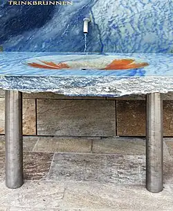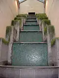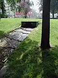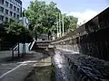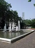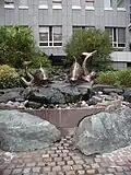 | Köln-Riehl, Kinderkrankenhaus Amsterdamer Straße. Die vor dem Haupteingang gelegene Brunnenanlage aus vier Waschbetonbecken wurde 1962 nach einem Entwurf von Professor Benno Schachner (1902–1987) installiert.[17] | |