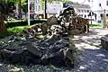 Die Anlage des „Tier- oder Märchenbrunnens“ im Stadtteil Köln-Mülheim steht am südöstlichen Ende der Jan-Wellem-Straße, am oberen Eingang zum Mülheimer Stadtgarten. Der aus Sandstein und Bronze gefertigte Brunnen ist nach einem Entwurf des Kölner Bildhauers Wilhelm Albermann im Jahr 1914 errichtet worden. Die Jungengruppe des in der Mitte des großen Beckens aufragenden Brunnenstocks ist umgeben von vier in Lebensgröße dargestellten Tieren, die auf Sockeln ruhend das Bassin als Wasserspeier füllten.[17] 2023/24 erfolgte eine Sanierung des Brunnens.[38] |