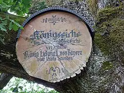 | Königseiche (die Zierde des Bades), Lieblingsplatz weiland S. M. König Ludwig I. 1818–1862 |