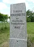 | 123 | Oberalbertsdorf | nordwestlich von Werdau ebenerdiger Granitstein von 1859 mit Loch für die Signalstange |