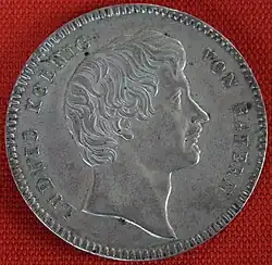 Ab 1806 galt die bayerische Münzordnung im neuen Königreich, sie vereinheitlichte das Münzwesen im Königreich und beendete das Münzchaos, welches durch das alte Reich entstanden war. Der Begriff „Münze“ ist dabei wörtlich zu nehmen, denn bayerisches Papiergeld gab es erst 30 Jahre später. 60 Kreuzer hatten den Wert von einem Gulden.[9][10] Geprägt wurden die bayerischen Münzen zentral in München durch das königliche Münzamt. Auch kleinste Werte der bayerischen Währung, wie z. B. Ein- und Sechs-Kreuzer-Stücke, trugen die Porträts der bayerischen Könige. Das bayerische Wappen mit Krone war immer auf der Gegenseite abgebildet.