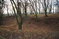 • Berg Zámecký vrch mit Burgstall der früheren Burg Kinsberg