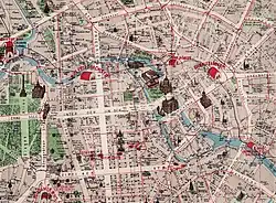 - ↑ Dessen Gelände gehörte ursprünglich zum Stadtteil Schöneberger Vorstadt von Alt-Berlin, ab 1920 zum Bezirk Tiergarten und wurde erst 1938 dem Bezirk Schöneberg zugeschlagen. Formal verblieben die Kolonnaden bei der Versetzung 1910 also in der Stadt Berlin.