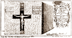 Zur Zeit der Revolutionskriege am Ende des 18. Jahrhunderts zerschlugen französische Soldaten die beiden Adelswappen auf den Kreuzenden sowie die Arme und Beine des Korpus. Auch das Christus-Gesicht weist Spuren von Misshandlung auf. Die Arme wurden später wieder ausgebessert.