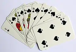 Es wird ein normales französisches Blatt mit 52 Karten verwendet, normalerweise nach dem modernen schwedischen Bild.[1]