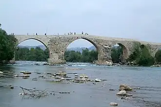 ![]() Der Köprüçay bei Selge mit der römischen Steinbogenbrücke | ||