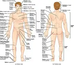 Als Körperteil bezeichnet man in der Anatomie einen Abschnitt eines menschlichen oder tierischen Körpers, der sich morphologisch und funktionell abgrenzen lässt.[1] Dies können große Körperabschnitte wie der Kopf, der Rumpf oder die Gliedmaßen, aber auch Teile dieser wie Nase, Hand, Finger, Augen etc. sein.
