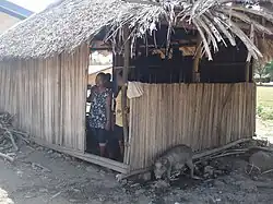 Der Stadtbewohner konsumiert durchschnittlich jährlich 19,1 kg Fleisch, der Landesdurchschnitt beträgt nur 13,3 kg.[5] Es wird meistens gebraten oder gegrillt.[3] Am häufigsten wird Hühnchen gegessen, daneben auch Schwein, seltener auch Rinder, Büffel und Ziegen.[5][7] Fleisch und Fisch gibt es für den Großteil der Bevölkerung nur zu besonderen Anlässen wie Feiern und Zeremonien. Nur bei 48 % der Osttimoresen sind tierische Produkte Teil des täglichen Speiseplans.[5] Neben dem Muskelfleisch werden auch die Innereien gegessen.