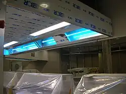 UV-Anlagen oder Ozongeneratoren in der Küchenabluftanlage können Geruchsbelästigungen durch Mikrooxidation mit Ozon reduzieren oder ganz neutralisieren. Ozon kann durch die Bestrahlung der Abluft mit UV-Licht in Wellenlängen kleiner als 200 nm erzeugt werden.[10] Alternativ wird das Ozon in separaten Ozongeneratoren erzeugt und der Abluft zugeführt.[11]