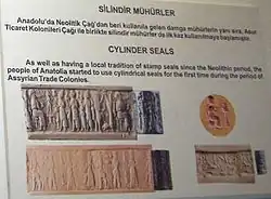 Stempelsiegel wurden in Anatolien bereits im Neolithikum benutzt. Mit den nordsyrischen und mesopotamischen Handelskontakten kamen im 19. Jahrhundert v. Chr. auch Rollsiegel nach Anatolien, die schnell dem einheimischen Stil angepasst wurden. Die anatolischen Rollsiegel bestehen aus Hämatit und wurden offenbar nur in Kültepe der Schicht II verwendet. Sie zeigen einen Linearstil mit verschiedenen Motiven, häufig Personen, Tiere, Mischwesen, Gestirne oder Symbole, oft zu Szenarien zusammengestellt. Diese werden naturalistisch und detailliert abgebildet. Augen werden auffallend groß dargestellt, Nase, Finger oder Tierkrallen sind deutlich abgebildet. Die Rollsiegel können mythische und religiöse Motive zeigen, auch Jagd- und Kriegsszenen, dazu kommen noch Landschaften oder Tierfriese. Die dargestellten Personen und Tiere stehen teilweise auf verschiedenen Ebenen und sind nicht immer gleich groß.