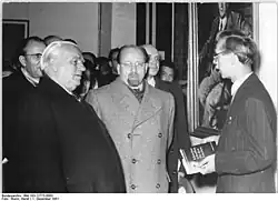 - ↑ Die große Deutsche Kunstausstellung „Künstler schaffen für den Frieden“ wurde am 1.12.51 in den Räumen der Staatlichen Museen in Berlin in Anwesenheit von Präsident Pieck und Ministerpräsident Grotewohl feierlich eröffnet. UBz: Präsident Pieck, Ministerpräsident Grotewohl und der Stellv. Ministerpräsident Ulbricht im Gespräch mit Prof. Otto Nagel,