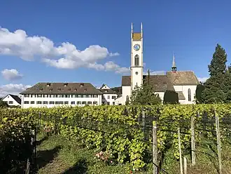 Seit dem 12. Jahrhundert ist Küsnacht als eines der grössten und wichtigsten Rebgebiete am Zürichsee belegt.[11] Die Küsnachter Reben erstreckten sich bis Anfang 20. Jahrhundert vom Goldbach über Kusen, Wangensbach, Obere Schiedhalde bis in den Heslibach. Haupterwerbsquelle der Bevölkerung waren Weinbau und Landwirtschaft mit dem dazugehörigen handwerklichen Gewerbe. Der erste Nachweis des bedeutenden Weinbergs im Wangensbach stammt aus dem Jahr 1284 und ist somit älter als der Bundesbrief.[12]