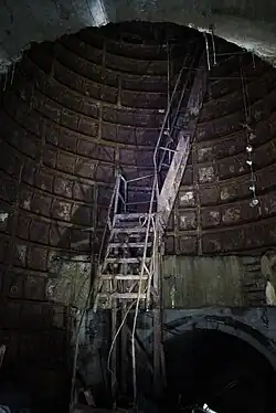 Küvelage bezeichnet eine Art des wasserdichten Schachtausbaus durch gusseiserne Ringsegmente (Tübbings).