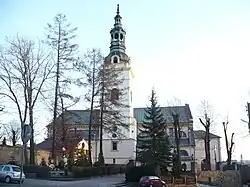 Die dem Heiligen Martin von Tours und der Heiligen Margareta geweihte Pfarrkirche wurde von Piotr Dunin begründet. Die Kirche nahm die Funktion der alten Bartholomäuskirche ein. Der spätgotische Bau der Kirche wurde von 1466 bis 1480 von den Kanonikern erbaut, die seit 1454 im anschließenden Kloster ansässig waren. Für die Baumaßnahmen war Baumeister Jan aus Krakau verantwortlich, der von Jan Długosz angeworben wurde. Jan Długosz war für die Entwicklung der Pfarrei von großer Bedeutung und stiftete unter anderem liturgisches Gerät für die Pfarrkirche, das noch heute zum Kirchenschatz gehört. Um das Jahr 1623 erfolgte der Umbau der Kirche im Stile des Frühbarock, worauf Umbauten in den Jahren 1670, 1796 und 1810 folgten.