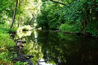 ![]() Die Kłodawa in der Nähe des gleichnamigen Dorfs (Kladau) | ||