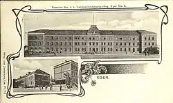 Alte Landwehrkaserne in Eger um 1900. Gebäude steht noch. Koordinate: 50° 5′ 2″ N, 12° 21′ 49″ O
