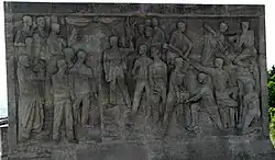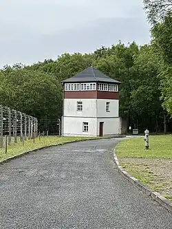 Das KZ Buchenwald, amtlich KL Buchenwald, war eines der größten Konzentrationslager auf deutschem Boden. Es wurde zwischen Juli 1937 und April 1945 auf dem Ettersberg bei Weimar als Haftstätte zur Zwangsarbeit betrieben. Insgesamt waren in diesem Zeitraum etwa 277.800 Menschen aus 50 Ländern im Konzentrationslager Buchenwald inhaftiert.[1] Die Zahl der Todesopfer wird auf etwa 56.000 geschätzt, darunter 15.000 Sowjetbürger, 7.000 Polen, 6.000 Ungarn und 3.000 Franzosen.[2] Bei der Annäherung der 3. US-Armee am 11. April 1945 übernahmen die Häftlinge die Leitung des Lagers von der abziehenden SS, nahmen 125 der Bewacher fest, öffneten die Tore und hissten die weiße Fahne.