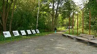 Das 4,2 Hektar große und überwucherte Lagerareal war wegen seiner Schwermetallbelastung aus der Batterieproduktion über Jahrzehnte nicht zugänglich.[15] 1989 erwarb die Stadt Hannover das Grundstück von der Akkumulatorenfabrik. 2024 führte sie für 750.000 Euro eine Umgestaltung des Geländes in einen Gedenk- und Informationsort durch[16] und erschloss es durch einen Rundweg.[17][18] Der rund 300 Meter lange Weg führt durch das ehemalige Lagerinnere, in dem die waldartige Vegetation belassen worden ist. Die Standorte von Baracken und Wachtürmen sind durch Metallstelen markiert. Am Weg stehen 22 Informationstafeln zur Geschichte des ehemaligen KZ-Außenlagers.[19] Die Eröffnung des Rundwegs fand am 8. Mai 2025, dem 80. Jahrestag des Kriegsendes und der Befreiung vom Nationalsozialismus, bei einer Gedenkveranstaltung statt.[20] Daran und an einem Schweigemarsch nahmen mehrere hundert Menschen und 25 Angehörige ehemaliger Häftlinge aus Dänemark und Frankreich teil.[2]