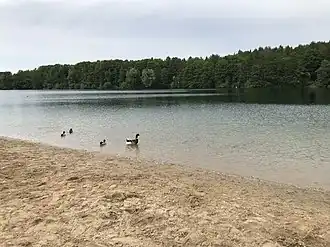 Der große See misst gut 18 Hektar bei bis zu 19 Metern Tiefe und dient vier dort ansässigen Sportvereinen zum Angeln, Segeln, Surfen und Tauchen.[1]