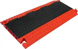 Kabelbrücken dieses Typs müssen Leitungen auch in Extremsituationen schützen und werden dadurch stark belastet, z. B. auf Baustellen oder bei Veranstaltungen im Freien (vgl. auch Schlauchbrücken). Gerade bei Veranstaltungen werden Kabelbrücken auch oft als Überfahrschutz verwendet und als Schutz der Besucher vor elektrostatischer Entladung. Die Kabelbrücke stellt eine nichtleitende Grenze zwischen Mensch und Stromkabel dar. Sie bestehen häufig aus starren Einzelsegmenten, die nach Bedarf aneinander gereiht werden. Häufig werden sie aus Aluminium, Hart-Kunststoff oder Gummi hergestellt. Improvisierte Lösungen aus Holz sind ebenfalls häufig im Einsatz.