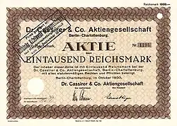 - Aktie der Cassirer Kabelwerke über 1000 Reichsmark aus dem Jahr 1930