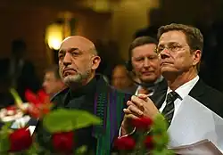 - ↑ In nod to U.S., Karzai to keep current ministers in top cabinet jobs In: The Washington Post. Abgerufen am 13. Januar 2012 (englisch). Afghan Officials: Karzai to Keep Half His Cabinet. VOA News, 18. Dezember 2009, abgerufen am 13. Januar 2012 (englisch).