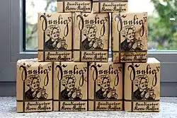 Der geröstete Feigenkaffee dürfte seinen Ursprung Mitte des 18. Jahrhunderts in Oberitalien haben. In Deutschland wurde er erstmals im Jahr 1858 erwähnt und im Jahr 1873 von den Unternehmen Kaffeesurrogatfabrik Otto E. Weber in Berlin und Heinrich Franck Söhne in Ludwigsburg hergestellt. Heinrich Franck Söhne erwarben 1910 die Aktienmehrheit des Heilbronner Unternehmen Emil Seelig,[23] das damals die größte Kornkaffeefabrik in Deutschland war und ebenfalls über eine Feigenkaffee-Fabrik im österreichischen St. Peter verfügte.[24] In Österreich hatte die Firma Imperial in Wien 1880 mit der Produktion von Feigenkaffee begonnen,[25] 1889 die Brüder Kunz mit Feigen- und Malzkaffee in der Pokornygasse, ebenfalls in Wien, 1895 Julius Theodor Titze in Linz, 1926 wurden dort 6000 Tonnen „Titze Gold-Feigenkaffee“ produziert. Das Unternehmen wurde später von Karl Franck übernommen.[26]