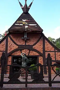 Das eingeschossige giebelständige Gebäude auf unregelmäßigem Grundriss als doppeltes Giebelhaus in Backstein, mit ziegelgedecktem Satteldach in Fachwerk mit vor- und rückspringenden unregelmäßigen Steinausfachungen wurde 1925 nach Plänen von Bernhard Hoetger als Café und Restaurant gebaut. Mit dem im Detail durchgeformten Haus verwirklichte er seinen expressionistischen Stil zu einer organischen Einheit als seine kreative Schöpfung. Die beschnitzten Balken sind geschwungen und greifen weit über die Fassade hinaus. Die vorgelagerte Terrasse hat ein plastisches Geländer zwischen den Backsteinpfeilern.