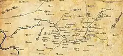 - ↑ Der Grenzverlauf der historischen Territorien kann stark abweichend dargestellt sein. Die Zugehörigkeit einiger Dörfer konnte nicht exakt nachgewiesen werden. Die Ortsnamen wurden in ihrer heutigen Namensform eingetragen.