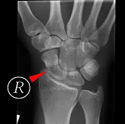 - ↑ A. D. Duckworth, G. A. Buijze, M. Moran, A. Gray, C. M. Court-Brown, D. Ring, M. M. McQueen: Predictors of fracture following suspected injury to the scaphoid. In: The Journal of bone and joint surgery. Band 94, Nummer 7, Juli 2012, S. 961–968, doi:10.1302/0301-620X.94B7.28704, PMID 22733954.