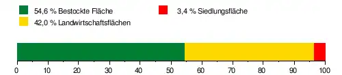 Es besteht zu 54,6 % aus bestockter Fläche, zu 42,0 % aus Landwirtschaftsfläche und zu 3,4 % aus Siedlungsfläche.