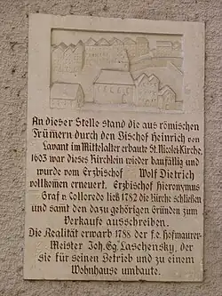 Das Haus Ecke Herrengasse ist aus der ehemaligen Nicolaikirche hervorgegangen. Die Kirche St. Nikolai wurde im Mittelalter von einem ungenannten Bischof von Lavant erbaut und besaß zwei Altäre, einer zu Ehren des Apostels Matthias, und einer zu Ehren des Hl. Nikolaus. Wolf Dietrich von Raitenau ließ die baufällig gewordene gotische Kirche, die offensichtlich auch nicht mehr dem Zeitgeschmack entsprach, weitgehend abreißen und ersetzte sie 1603 durch eine neue Kirche, die dem Heiligen Nikolaus geweiht wurde. Diese Kirche war auch der Sitz der Laienbruderschaft „Aller Christlichen Seelen“ (Allerseelenbruderschaft) und Filialkirche der Dompfarre. Etliche Salzburger Landmänner und adelige Schiffsherren von Salzachschiffern (genannt Erbausfergen) besaßen in dieser Kirche eine Familiengruft. 1782 wurde die Kirche unter Erzbischof Hieronymus von Colloredo aufgelassen und verkauft. Der Hofmaurermeister Laschensky baute als Käufer darauf die ehemalige Kirche weitgehend um sie als Wohnhaus zu nutzen. Damals entstand auch die bis heute sichtbare Fassadengestalt.