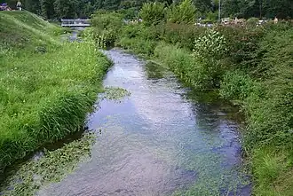 | Mündung | in Hollfeld neben der Flussbrücke der Forchheimer Straße von links und Norden in die obere WiesentKoordinaten: 49° 56′ 8″ N, 11° 17′ 25″ O 49° 56′ 8″ N, 11° 17′ 25″ O | |