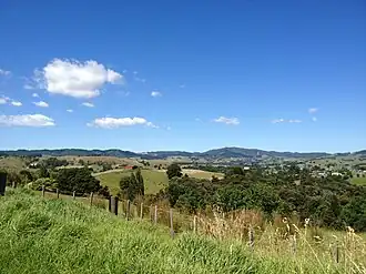 Landschaft mit Blick auf den 282 m hohen ehemaligen Vulkan Maungaturoto | |