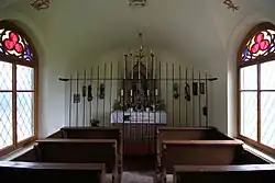 Der putzgegliederte Kapellenbau hat eine kleine eingezogene Apsis mit einem Dreiseitschluss. Über der rundbogige Portaltüre trägt das Satteldach einen Dachreiter. Die rundbogigen Fenster haben eine Holzmaßwerk. Das Kapelleninnere hat ein flaches Tonnengewölbe. Der neugotische Wimpergaltar trägt eine Figur der hl. Maria.