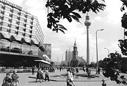 | Karl-Liebknecht-Straße mit Palasthotel, Marienkirche und Fernsehturm, 1981 | |