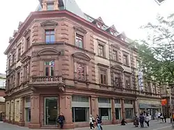 • Nr. 25 ist ein als Geschäftshaus um 1875 errichteter neoklassizistischer Putzbau mit farbigen Sandsteinteilen. Es ist Kulturdenkmal.[53]