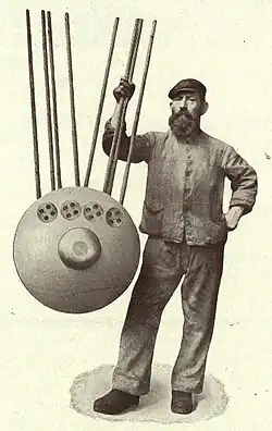 1909 wurde die Aufhängung der Glocke verändert, ihr innerer Rand abgedreht und ein neuer Klöppel angebracht.[8] Der Klöppel war eine vom Bochumer Verein konstruierte fast 900 Kilogramm schwere Stahlkugel mit 600 Millimetern Durchmesser. Sie hatte an den Anschlagstellen des Klöppels aufgesetzte Ballen aus Bronze und war an acht Seilen in der Glocke aufgehängt.[9] Dieser Klöppel befindet sich heute im Glockenmuseum unter der Glockenstube des Südturmes.
