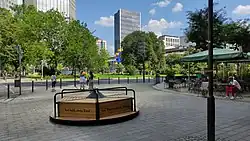 Auf dem Bürgersteig im südwestlichen Kreuzungsbereich von Kaiserstraße und Gallusanlage wurde am 2. September 2021 ein von der israelischen Künstlerin Yael Bartana geschaffenes Kindertransport-Denkmal zur Erinnerung an die jüdischen Kinder, die 1938/39 ohne ihre Eltern emigrieren mussten, eingeweiht.